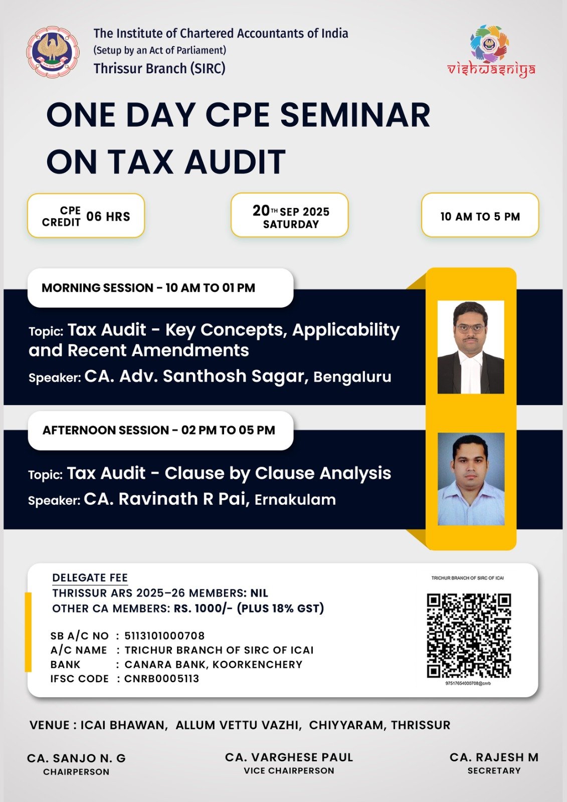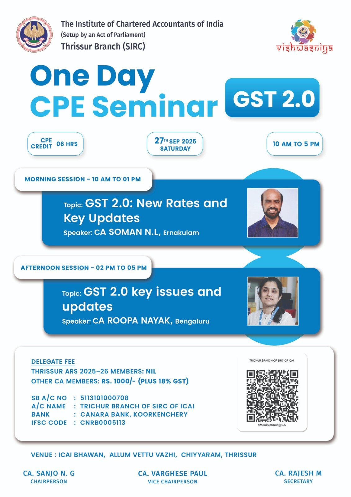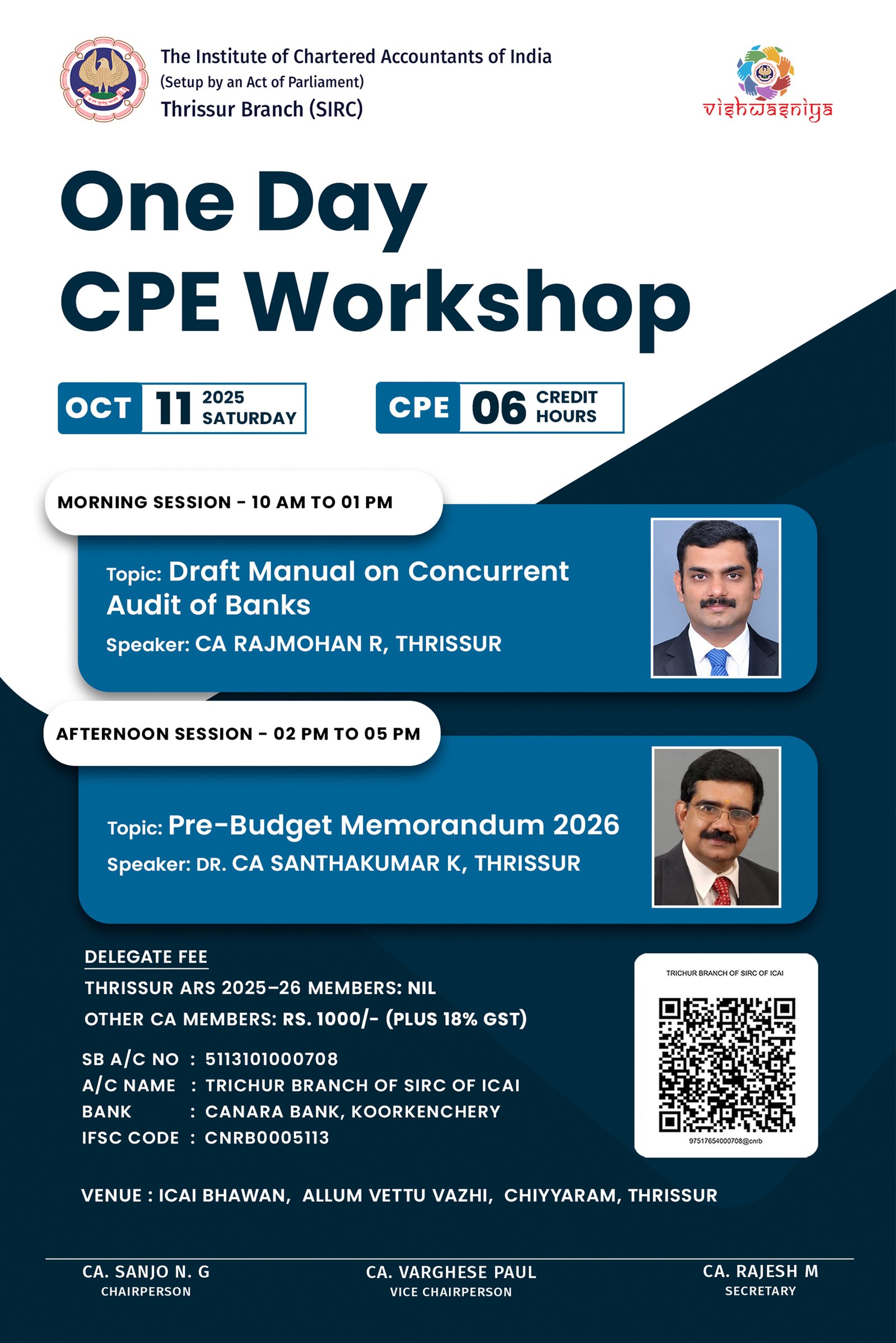 on 20 -09 -2025 CPE Credit: 6 Hours Venue: ICAI , Thrissur