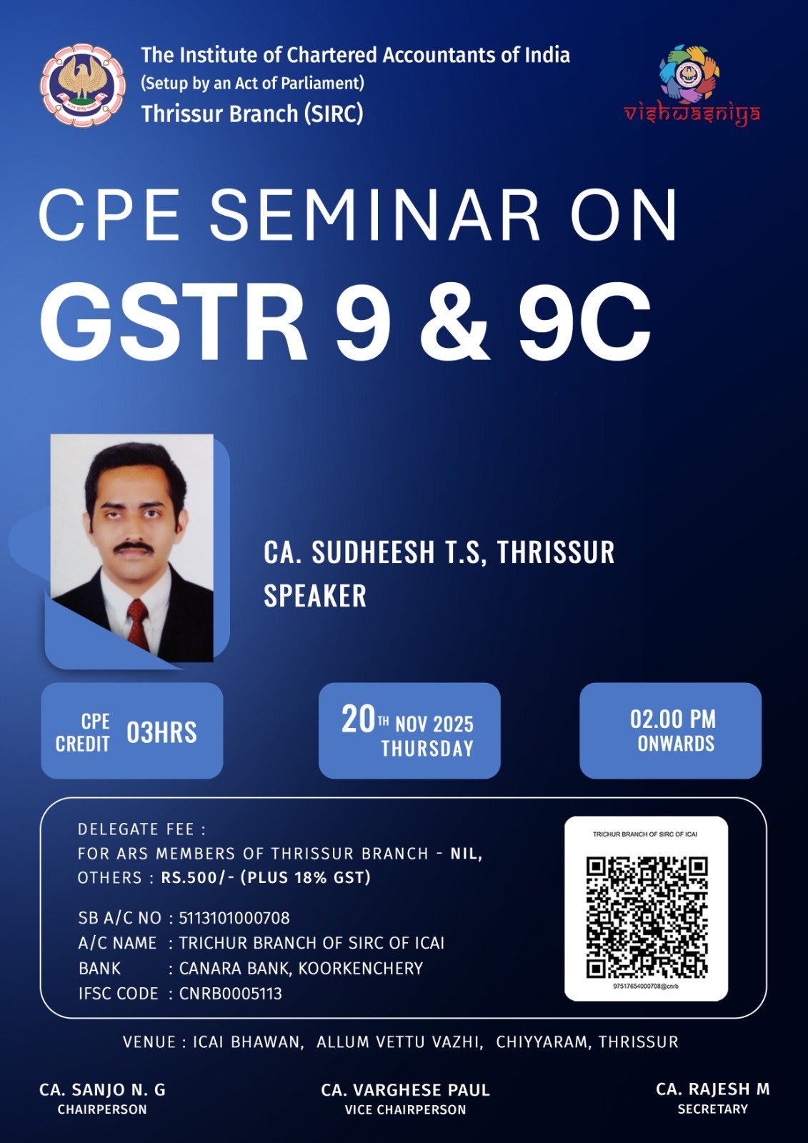 on 20 -11 -2025 CPE Credit: 3 Hours Venue: ICAI , Thrissur